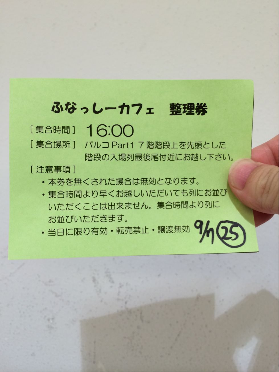 9月7日の日曜日、ふなっしーCafeに並んできました〜!