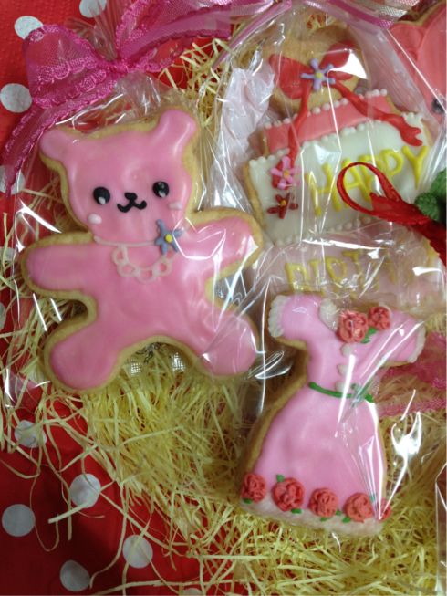 姫の似顔絵クッキーとバースデーケーキクッキー、チーキークッキー、名前入りクッキー、クマさんにドレスクッキー♪