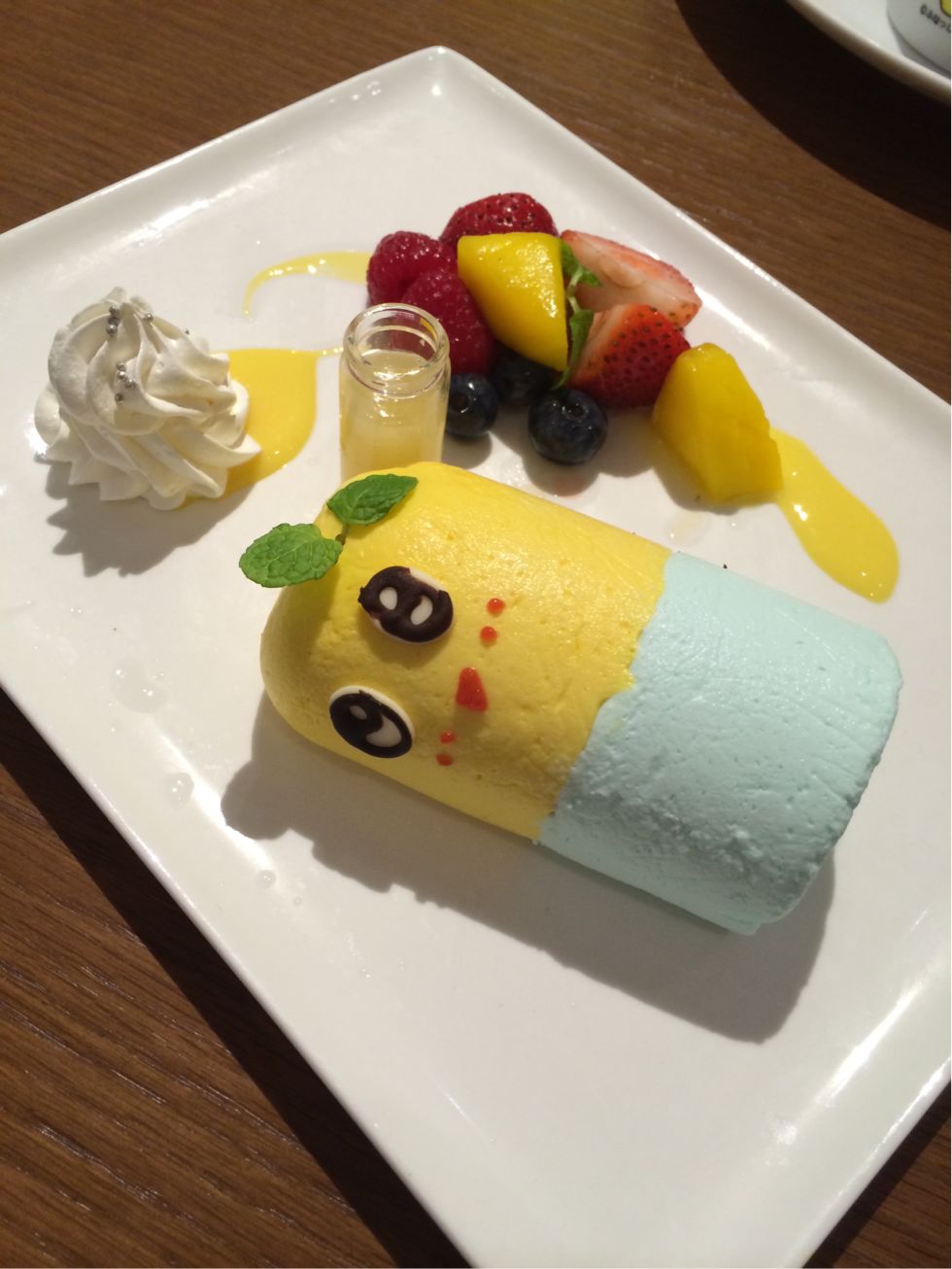 因みにお味は黄色部分がマンゴームース、水色がヨーグルトムースでした美味しい