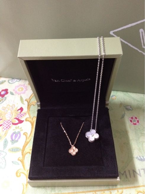 そうなんです、1歳のお誕生日プレゼントは思いっきり奮発して、ヴァンクリーフ&アーペルのスイートアルハンブラペンダントにしちゃいました!!